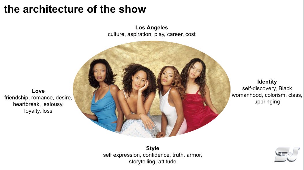 mara built a world that centered four ambitious, complex and unique Black women navigating friendship, love, self-discovery, identity, and career in L.A. â layered with the beauty, contradictions, and nuance that reflect Black womanhood in the new millennium â in a city where cost, image, class, and segregation are built into its DNA.