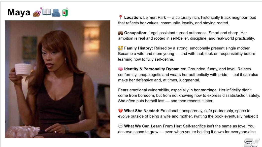 a roadmap to help us better understand each character by unpacking the pillars that shaped her â where she comes from, how she moved, and what she might have needed to truly heal and grow.
